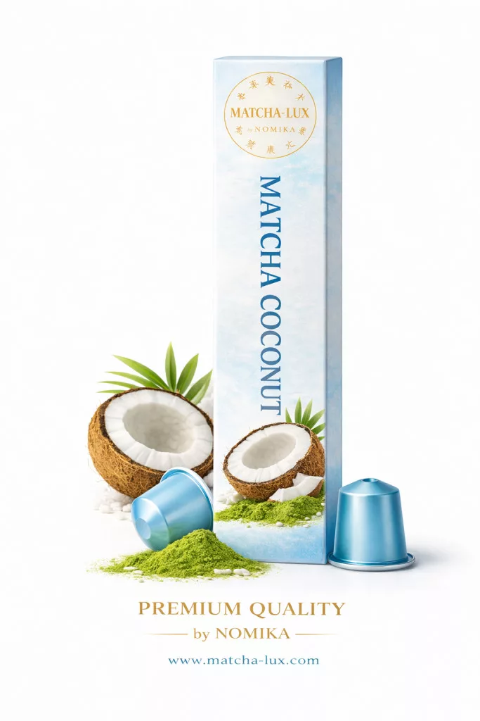 A Matcha-Lux Matcha Tea Kapszula – Kókusz a tradicionális japán matcha kultúra és a modern, egzotikus ízvilág különleges találkozása. Ez a prémium kapszulás ital azok számára készült, akik a mindennapokban is szeretnék átélni a minőségi matcha nyugtató, kiegyensúlyozó hatását, miközben egy krémes, kókuszos ízélménnyel gazdagítják az élményt.